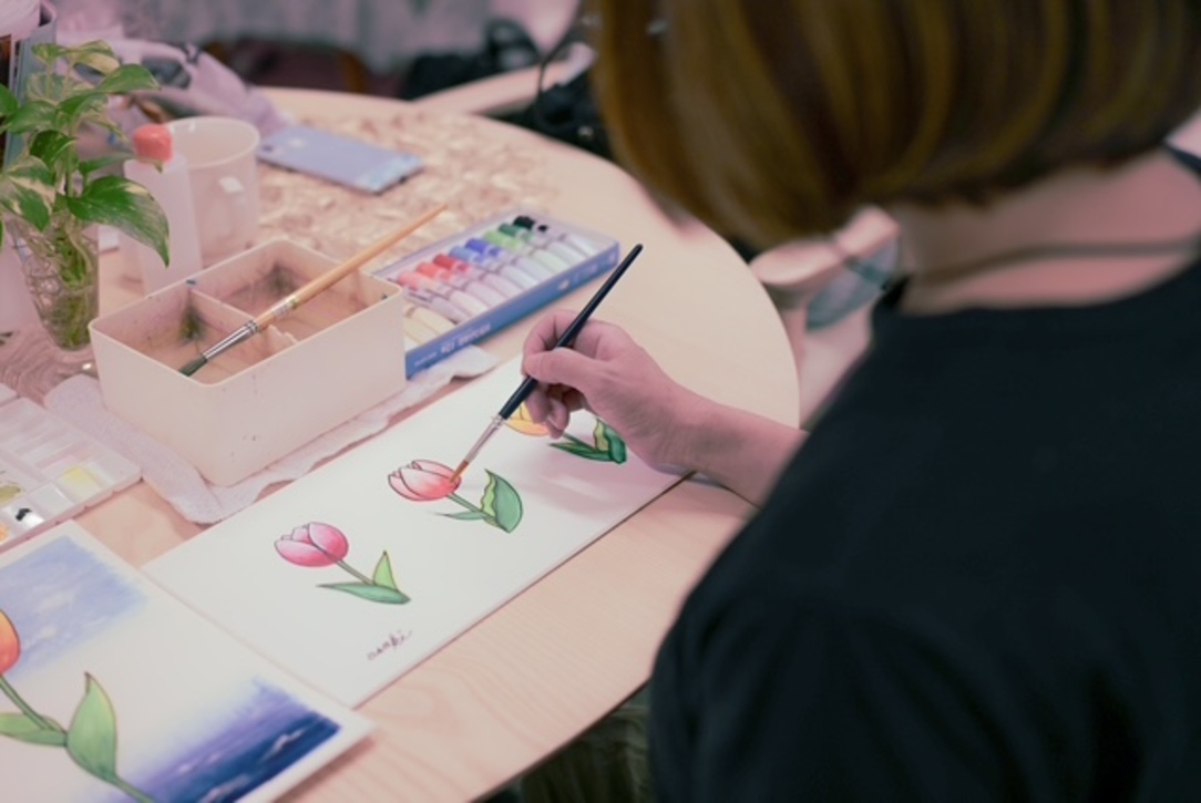 他の方々の絵を見ていると、パターンを決めて描いていらっしゃる方が多くて、すごいなと思います。自分はその時の気持ちでモチーフも描画材も決めるので、水彩だったりアクリルだったり、時には鉛筆だったり、いろいろやっていてめちゃくちゃで、統一性がないですね。好きなように描きます。これという決まったものがないところが、自分の面白いところでもあるかな、とも思っています。